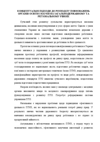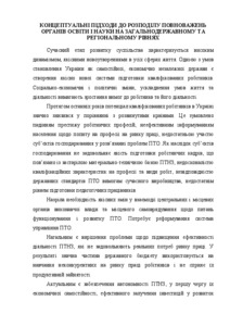 It concentrates on the following conceptual approach to the allocation of powers of Education as VET quality management, priority for regional policy in the field of education quality, condition and problems of social partnership, a European strategy for the development of vocational education and training strategy to modernize VET Ukraine on the basis of the policy of decentralization.