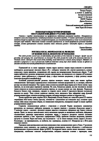 - Говорун, Т.В. and Коськіна, Даріна Олександрівна (2014) Psychological and pedagogical problems of modern adolescent's sexual behavior Збірник матеріалів Міжнародної науково-практичної конференції "Дитинство без насилля: суспільство, школа і сім’я на захисті прав дітей". pp. 523-525. ISSN 978-617-595-031-9