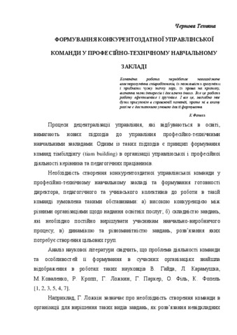 Описано шляхи формування конкурентоздатної управлінської команди у професійно технічному навчальному закладі.