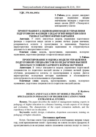 - Рябова, З.В. (2014) Design and evaluation of models traning speciIalists in pedagogy of higher education under extramural studies Theory and methods of educational management, 3 (14).