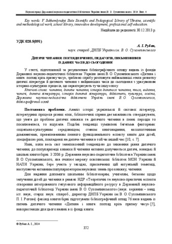 | Keywords: | reading, children’s reading, history of children’s reading, book, readers, children’s literature, history of children’s literature, libraries, culture, education, V. Sukhomlynskyi State Scientific and Pedagogical Library of Ukraine, bibliographic review |
