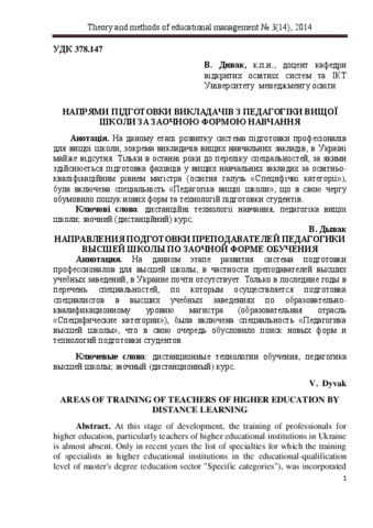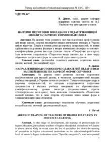 - Дивак, В. В. (2014) Areas of training of teachers of higher education by distance learning Theory and methods of educational management, 3 (14).