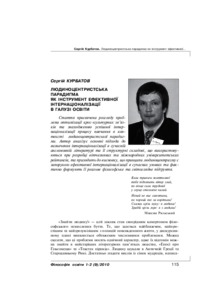 - Курбатов, Сергій (orcid.org/0000-0002-8929-7562) (2010) Humanocentric paradigm as an instrument for optimization of internationalization in the area of education Philosophy of Education, 1-2 (9). pp. 115-122. ISSN 2309-1606