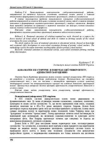 - Курбатов, Сергій (orcid.org/0000-0002-8929-7562) (2011) Alma Mater of the 21st Century: Searching For the Adequate Idea of Contemporary University Науковий часопис НПУ імені М.П. Драгоманова. Серія № 5. Педагогічні науки: реалії та перспективи., 1 (26). pp. 92-101. ISSN 2310-8290