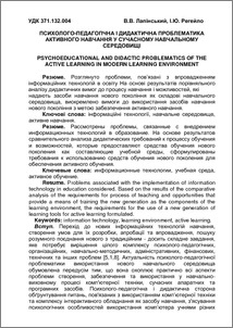 - Лапінський, В.В. (orcid.org/0000-0002-2832-4774) and Регейло, І.Ю. (2012) Psychoeducational and Didactic Problematics of the Active Learning in Modern Learning Environment Вища освіта України , 3 (46). pp. 595-605. ISSN 2078–1016