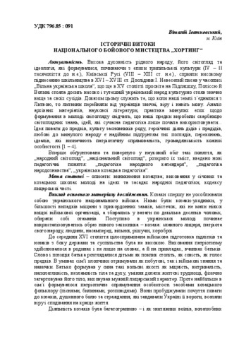 - Івашковський, В.В. (2014) Historical origins of national martial art „Horting“. Теорія і методика хортингу, 1. pp. 67-74. ISSN 978-966-437-403-0