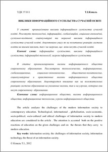 - Коваль, Т.І. (2012) Modern Education Challenges in the Information Society Педагогічний процес: теорія і практика: Збірник наукових праць. (3). pp. 103-121.