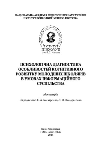Monohrafyya deals the problems of psychological diagnostics features contemporary cognitive development of younger schoolchildren and analysis of changes in the basic intellectual abilities over the past 25 years. The results of experimental studies presented in the book, show a significant impact of new information technologies on cognitive, social, emotional scope of today's children, and therefore modern school should rebuild their methods of training and education under the new conditions. The book can be useful not only psychologists, but also humanities university students, teachers, educators and parents.