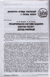 Finnish experience in the sphere of reformation of education service system is analysed. The authors recommend to use positive achievements of the Finnish system of education in Ukraine in practice (one and only compulsory examination, to assess knowledge of pupils starting from the 6th form, preschool education is not compulsory etc.).