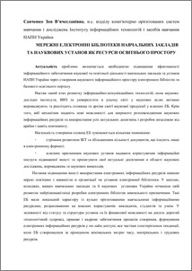 - Савченко, З.В. (2013) Мережні електронні бібліотеки навчальних закладів та наукових установ як ресурси освітнього простору In: Звітна наукова конференція Інституту інформаційних технологій і засобів навчання НАПН України . ІІТЗН НАПН України , м.Київ, Україна, pp. 98-101.