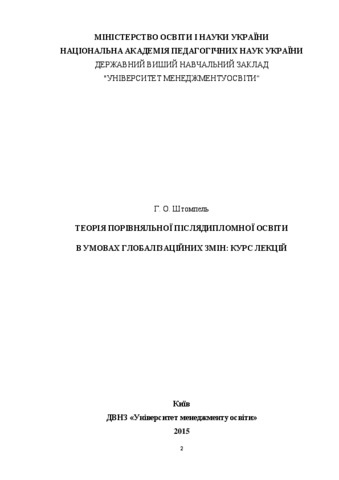 - Штомпель, Г.О. (2015) The theory of comparative postgraduate education in globalization changes [Teaching Resource] (Unpublished)