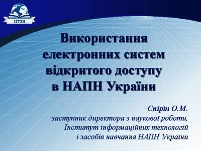 - Використання електронних систем відкритого доступу в НАПН України (deposited 06 Apr 2015 11:30) [Currently Displayed]