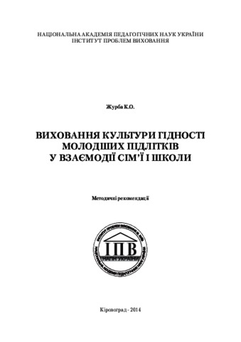 - Журба, Катерина Олександрівна (2014) Education Culture dignity young adults in the family and school interaction [Teaching Resource]