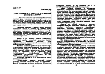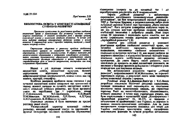 - Лук’янова, Лариса Борисівна (2005) Ecological еducation in the context of the concept of sustainable development Problems of formation of values of professional activity, 1. pp. 144-154.