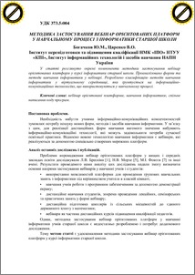 - Богачков, Ю.М. and Царенко, В.О. (2013) Методика застосування вебінар орієнтованих платформ у навчальному процесі з інформатики старшої школи Інформаційні технології в освіті (14). pp. 42-47. ISSN 1998-6939