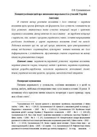 - Сухомлинська, Ольга Василівна (2015) Konceptualizaciya of ideas is about education of morality in modern Ukraine School world, 4 (708). pp. 4-20.