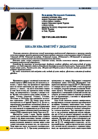 - Камишин, Володимир Вікторович (2014) Scale qualimetry in didactics Education and Development of Gifted personality, 1 (20). pp. 50-60. ISSN 2309-3935