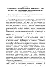 - Шевчук, П.Г. (2009) Using Microsoft .NET platform and C# language in teaching of programming in secondary educational institutions In: Нові інформаційні технології в освіті для всіх: інноваційні методи та моделі, 24-26 листопаду 2009 , Київ.