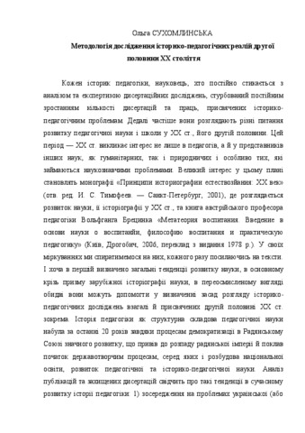 - Сухомлинська, Ольга Василівна (2005) Research Methodology historical and pedagogical realities second half of XX century Through education (4). pp. 43-47.