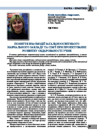 - Андросович, Ксенія Анатоліївна (2014) The concept of cooperation between general education institution and family while designing the development of a gifted pupil Education and Development of Gifted personality, 3 (22). pp. 19-21. ISSN 2309-3935