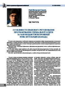 - Гоцуляк, Юрій Вікторович (2014) Peculiarities of legal regulating the programming of special education according to the law of the province New Scotland (Canada) Education and Development of Gifted personality, 2 (22). pp. 30-33. ISSN 2309-3935