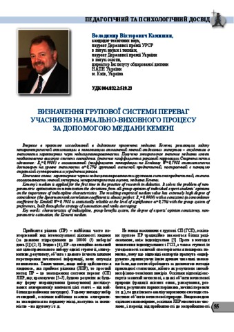 - Камишин, Володимир Вікторович (2014) A group system of benefits determination of training and educational process participants through the Kemeny’s median Education and Development of Gifted personality, 3 (22). pp. 55-60. ISSN 2309-3935