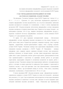 Pursuant to the Resolution of the General Meeting of NAPS of Ukraine of 5 April 2012 r. № 1-6 / 1-8 p.2.11. "During 2012 to ensure the implementation developed at the Academy of Information System documents relating to planning, scientific research and monitoring of their performance," and in order to implement the results of research "Scientific and methodological support of information systems planning research at the Academy of Pedagogical Sciences of Ukraine based Internet "that was carried out during 2009-2011., department of electronic information resources and technologies of networked information technology and learning NAPS Ukraine in 2012, the following work.