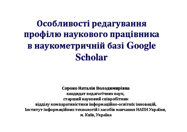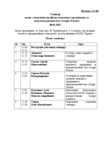 Materials of the seminar-training on creating a profile of a scientist in scientometric database Google Scholar, which took place on 08.04.2015 year at the Institute of information technologies and learning tools of NAPS of Ukraine.