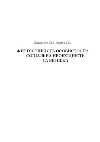 Титаренко, Тетяна Михайлівна (orcid.org/0000-0001-8522-0894) and Ларіна, Тетяна Олексіївна (orcid.org/0000-0001-8975-3348) (2009) The hardiness of the individual: social necessity and safety Бібліотечка соціального працівника . ФОП - Марич В.М, м.Киів, Україна. ISBN 978-966-8479-37-3