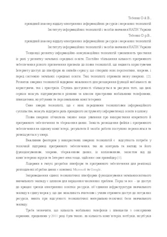 Trends ICT contribute to their growing role in the development of secondary education. The constant increase in the number of applications on various targets led to the emergence of technologies that provide Internet users access the platform as an online service, creating new prospects, in particular, to the system of secondary education. Such technology called cloud. The development of cloud technology offers opportunities for mobility extension features for both users and devices. The degree of availability is increased by the fact that these services can be supported by different devices by class mobile phones, tablets, laptops and PCs.