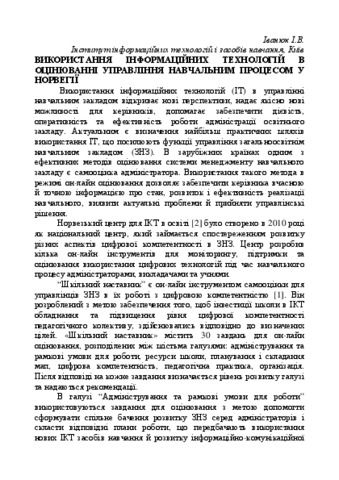 The paper pointed out that the development of educational measurement tools and research to monitor the quality of education in Norway is engaged in special purpose entity – Norwegian Centre for ICT in education. Draw attention to the principles of online tools for self-assessment by administrators of secondary schools own level of digital competence.