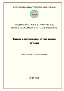 Жук, В.В. (orcid.org/0000-0001-8183-5250), Литвинова, В.В., Литовченко, С.В. (orcid.org/0000-0003-0001-4667), Максименко, Н.Л., Борщевська, Л.В. and Шевченко, В.М. (orcid.org/0000-0003-0119-3206) (2011) A hearing-impaired child: advice for the parents . Інститут спеціальної педагогіки, м.Київ, Україна.