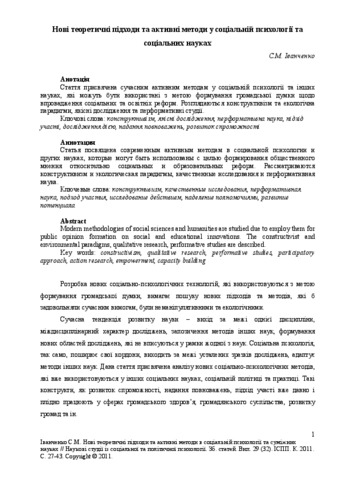 - Іванченко, С.М. (orcid.org/0000-0002-1434-5048) (2011) Modern theoretical approaches and active methods in social psychology Наукові студії із соціальної та політичної психології, 29 (32). pp. 27-43.