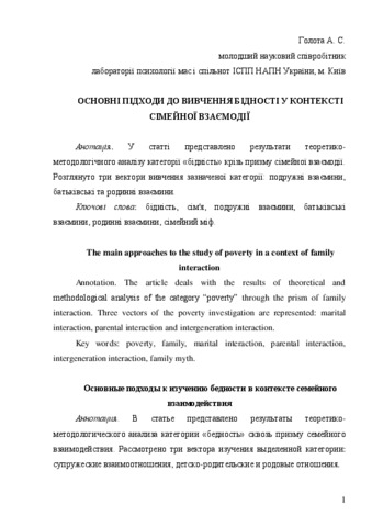 - Голота, А. С. (2012) The main approaches to the study of poverty in a context of family interaction Освітній простір. Глобальні, регіональні та інформаційні аспекти, 2012 (7). pp. 123-127.