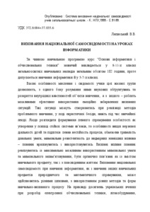 - Лапінський, В.В. (orcid.org/0000-0002-2832-4774) (1999) Education of national consciousness in computer science lessons Система виховання національної самосвідомості учнів загальноосвітньої школи. pp. 95-98.