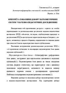 The criterias and their indicators of selection in scientometric systems in the scientific and pedagogical researches