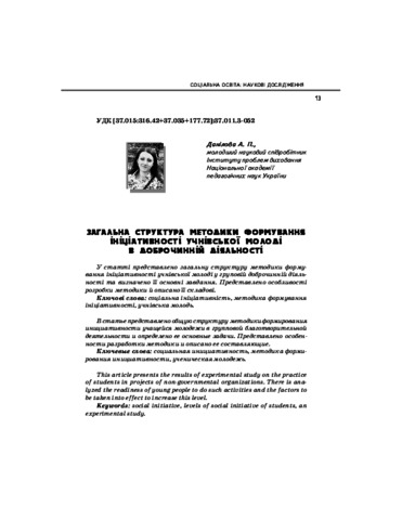 - Данілова, А. П. (2013) The general structure of methods of forming youth initiative in charitable activities Соціальна робота в Україні: теорія і практика, 3 (4). pp. 13-21.