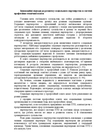 The article highlights innovative approaches to the development of social partnership in the system of vocational education.