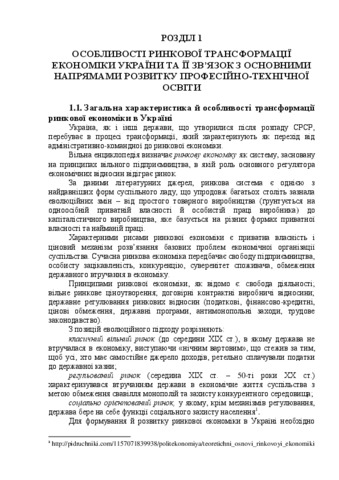 In article it is substantiated features of market transformation of Ukraine's economy and its relationship with the main directions of development of vocational education (decentralization, innovative management technology, partnerships with employers, introduction of innovative technologies in the educational and production process of vocational schools, etc).