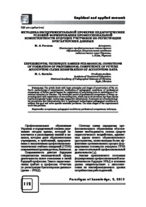 The article deals with basic principles and stages of construction of the author’s methodology of experimental verification of pedagogical conditions of professional competence of future clerks accounting for registration of accounting data in institutions of vocational education in Ukraine. The developed model of professional competence of future accounting clerks with registration of accounting data, which in its structure has three blocks (methodologically-target, technology, diagnostic-adjustment). Developed of methodological procedures that demonstrates how to implement technological pedagogical conditions to achieve this goal and solve specific problems, identified the main stages of the experimental work.