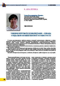 - Прашко, Олена Володимирівна (2014) Conflict control ability as a symbol of social and competitive person Education and Development of Gifted personality, 4 (23). pp. 96-101. ISSN 2309 ‑3935