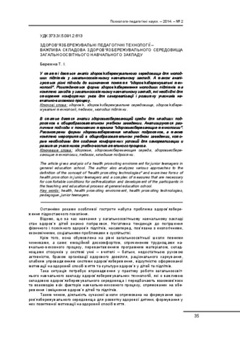 - Бережна, Т. І. (orcid.org/0000-0002-4626-6133) (2014) Health promoting technologies - an important part health promoting environment of an educational institution Наукові записки. Серія "Психолого-педагогічні науки", 2. pp. 35-39.