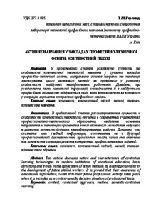 - Герлянд, Т.М. (2015) Active learning in institutions of vocational education: the contextual approach In: Теорія і методика професійної освіти , 5 . ІПТО НАПН України, м.Київ, Україна.