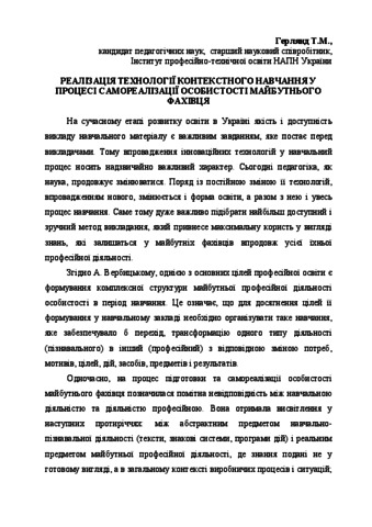 - Герлянд, Т.М. (2015) The implementation of technology in the context of learning self-realization of the future expert In: Інноваційний розвиток вищої освіти: глобальний та національний виміри змін: матеріали ІІ Міжнародної науково-практичної конференції (26–27 березня 2015 року, м. Суми). . СумДПУ імені А.С.Макаренка, м.Суми, Україна, pp. 53-55.