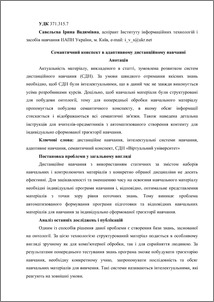 | Keywords: | дистанційне навчання, інтелектуальні системи навчання, адаптивне навчання, семантичний конспект, СДН «Віртуальний університет» |
