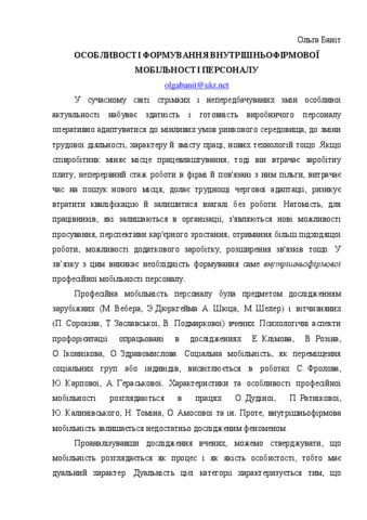 The author reveals peculiarities of forming intra-mobility of staff.