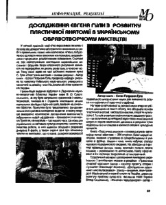- Кирій, Світлана Василівна (2014) Yevhen Hula’s research on the development of plastic anatomy in Ukrainian art Мистецтво та освіта, 4 (74). pp. 59-60. ISSN 2308-8885