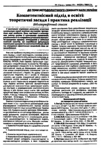 This bibliographic study was conducted by V. O. Sukhomlynskyi State Scientific and Pedagogical Library of Ukraine to promote the further development of the theoretical principles and practical recommendations on the implementation of the competence approach in education. This material will serve as a source of information for research scientists, graduate students, professors and students, who study and implement the competency approach in practice of educational activities