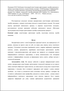 - Науменко, О.М. (2009) Computerized Educational techniques’ Integration Peculiarities in Teacher Training at Teachers’ Training Colleges , 3 (11). ISSN 2076-8184