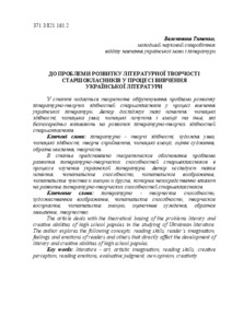 The article deals with the theoretical basing of the problems literary and creative abilities of high school papules in the studying of Ukrainian literature. The author explores the following concepts: reading skills, reader’s imagination, feelings and emotions of readers and others that directly affect the development of literary and creative abilities of high school papules.